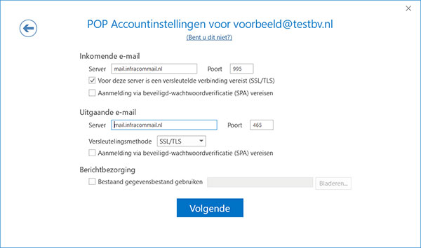 - Server voor inkomende e-mail: mail.infracommail.nl