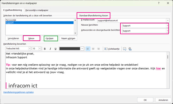 - Vergeet niet om op de knop [Opslaan] te klikken om je handtekening op te slaan nadat je hem hebt veranderd!